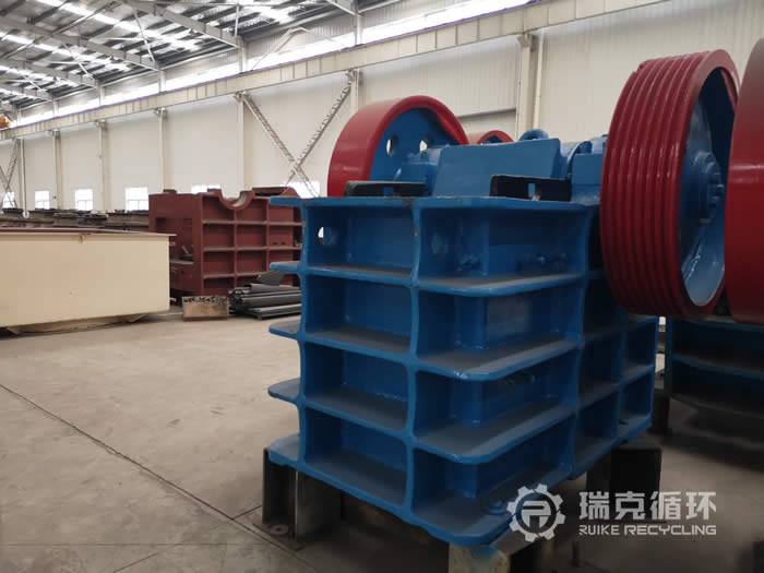 該臺500X700顎式破碎機是用戶將生產設備中的設備拆除轉讓給我公司,由于該地區被列為濕地保護區,該區域的生產線企業都需要搬離,因此將設備整體轉讓給我公司。在現場我公司技術人員對該設備進行的檢查,設備符合公司回收標準之后將設備拆除運回公司。設備達到公司以后對設備進行了拆機檢查,并且根據檢查結果進行了系統的檢修,襯板等易損件都重新進行了更換,然后進行試機運行,在數個小時的試機中該設備運行的非常平穩,沒有不良現象的出現,性能符合標準之后重新噴漆。