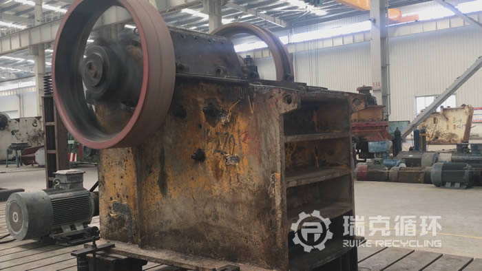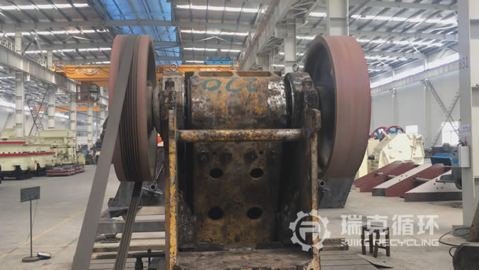 DHKS3624顎式破碎機是洛陽大華生產的,由于是我集團公司的設備我們比較熟悉,該DHKS3624顎式破碎機使用單位與我公司聯系回收之后,我公司派技術人員到客戶現場進行了檢查,基本上沒有重大損壞之后準予回收。我們從外觀可以看出該設備的架體除了銹跡以外,幾乎沒有其它的損壞,設備清洗拆開之后,對每一個零部件都進行的測量,除了易損件以外其它零部件基本上沒有磨損問題,然后根據檢測結果進行維護和保養,并且重新更換易損件之后進行安裝調試,在我公司試機平臺上進行了數個小時的試機,各項性能符合要求之后,重新進行噴漆銷售。