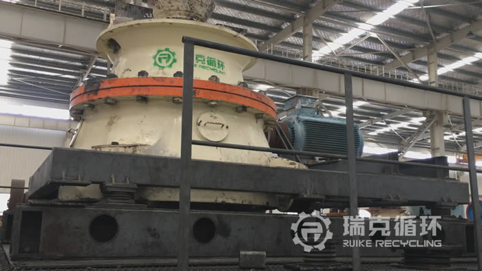 該臺GP300圓錐破碎機一直湖北某地使用,從事輝綠巖的破碎工作,由于當地對砂石骨料的需求量增多,該企業現有的生產設備不能滿足需求,因此將設備轉讓更換生產能力更大的設備,我公司派技術人員到現場查看檢測之后,指導拆機裝車將設備運回公司。設備運達我公司之后,在車間把設備清洗干凈之后進行拆機檢測,根據檢測結果制定檢修計劃,除了易損件以外,其余零部件基本上沒有受損,完成檢修和保養之后設備重新裝機,并將設備吊放在我公司試機平臺上進行試機運行,在試機中設備運行的非常平穩,各項性能也符合要求。