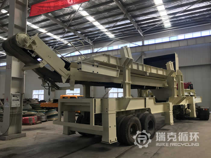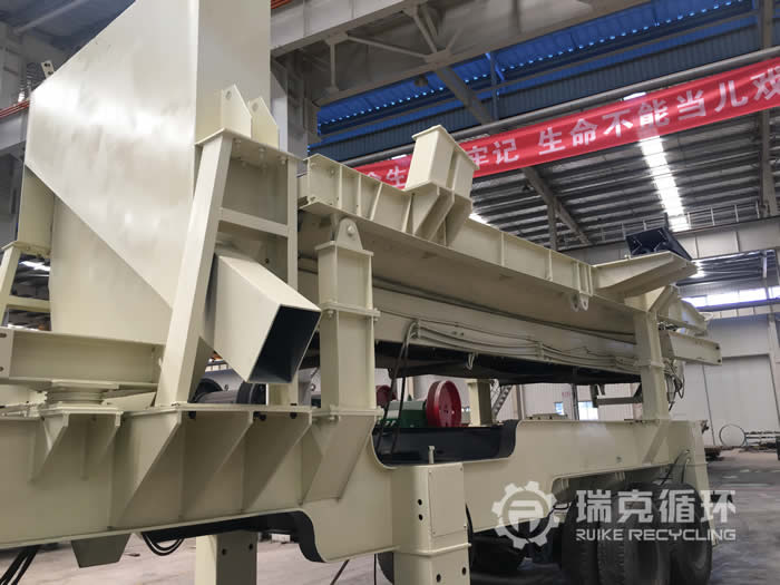 該臺200噸輪胎移動破碎站是由我公司洛陽瑞克循環利用科技有限公司自主研發并組織生產的,我公司本著為客戶降低資金投入的原則,采用的二手設備和新設備相結合的生產模式,保障生產能力的同時為客戶緩解資金壓力。該臺200噸輪胎移動破碎站是河南某客戶定制的,主要從事鵝卵石的破碎工作,經過不到一個月的時間已經制作完成,將分體發往客戶現場。