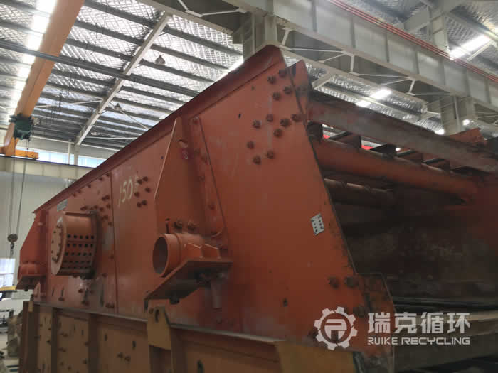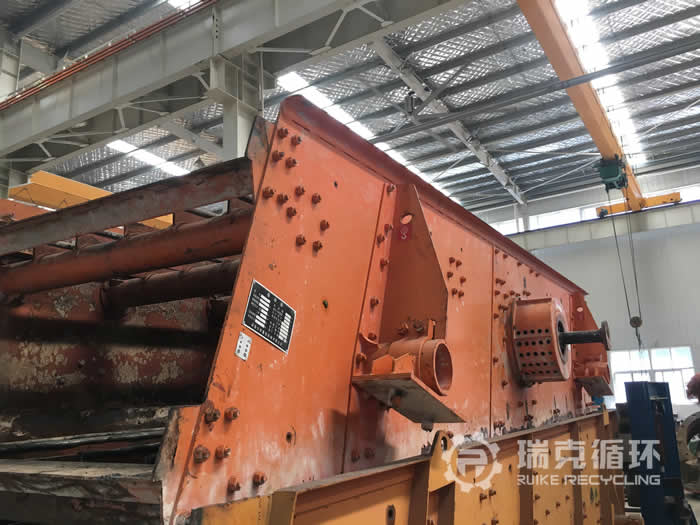 該臺2YK1860振動篩是我集團公司洛陽大華重機生產的,被銷往甘肅某地之后一直從事青石的篩分工作,在我公司除了有易損件更換之外沒有其它方面的維修記錄,于2019年6月被我公司回收,我公司技術人員也到現場檢查了該臺振動篩的實際情況,確定設備和客戶描述的沒有什么差別之后將設備運回公司,在我公司車間現場對該設備拆機檢查、檢修,完成檢修之后進行了數個小時的試機,試機中該臺振動篩性能非常的穩定,沒有出現不良現象,可根據客戶需要安裝篩網,出售前重新噴漆。