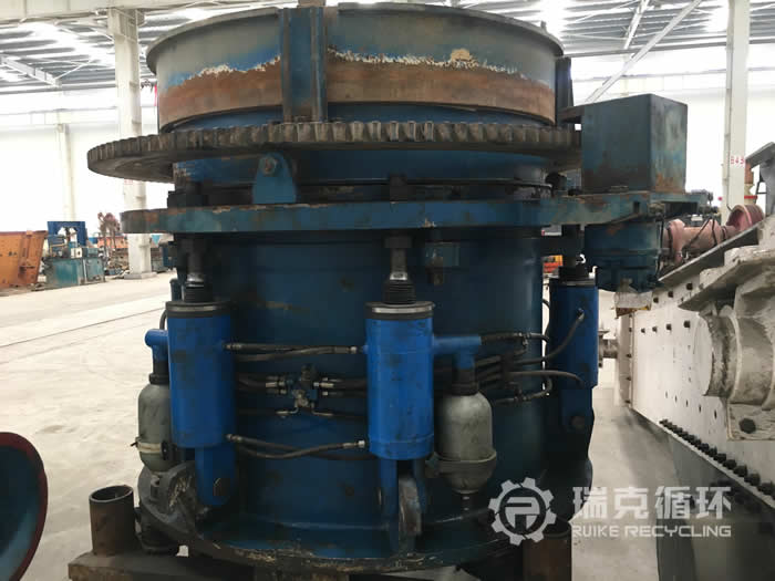 該臺XHP200多缸圓錐破碎機(jī)在山東某地從事玄武巖的破碎工作,被我公司回收之前還處于生產(chǎn)狀態(tài),受到多方面影響該企業(yè)將設(shè)備整體轉(zhuǎn)讓,與我公司達(dá)成回收協(xié)議之后,我公司派技術(shù)人員到現(xiàn)場檢查,并且指導(dǎo)將設(shè)備拆除運(yùn)回公司。由于我公司回收之前設(shè)備還沒有拆除,在現(xiàn)場我公司技術(shù)人員讓設(shè)備運(yùn)行檢查,沒有發(fā)現(xiàn)損壞等問題之后將設(shè)備回收,在我公司車間技術(shù)人員將設(shè)備清洗之后拆機(jī)檢查,檢查完成之后下發(fā)了維修通知,完成維修之后我公司試機(jī)平臺上進(jìn)行試機(jī),各項(xiàng)數(shù)據(jù)符合標(biāo)準(zhǔn)之后重新進(jìn)行噴漆銷售。
