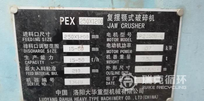 出售二手洛陽大華PEX250X1200復擺式顎破