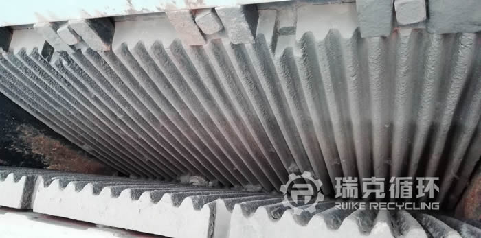 該臺PEX250X1200顎破是2013年黑龍江客戶從大華總公司購買,設備安裝好以后只進行了上料調試,后期因為手續原因,使該客戶的設備一直無法生產。2018年原客戶又聯系到我公司業務經理說明情況并協商將整套設備回收至我公司。該臺顎破運回我公司車間以后,由技術和質檢部人員對設備檢查,由于該設備一直沒有帶料正常生產,主機外觀保持的非常完整,除表面油漆有些褪色其它部件未發現有磨損情況。隨后我公司安裝部分將設備進行清洗、拆解檢查主機內部主軸和軸承部件,拆解完成后技術部對主機內部進行檢測未發現問題,整體檢測完成,安裝部門重新對設備進行組裝并試機,試機正常后由噴漆部門對設備做噴漆工作以保證設備的外觀如新。
