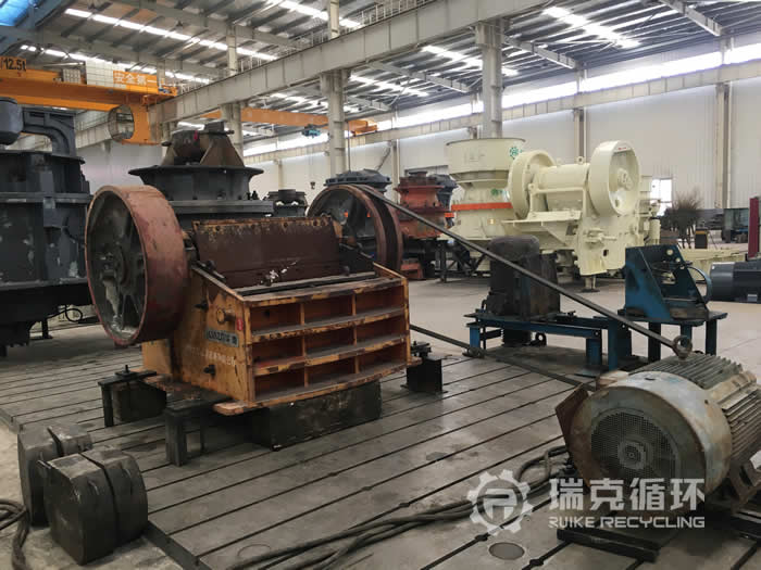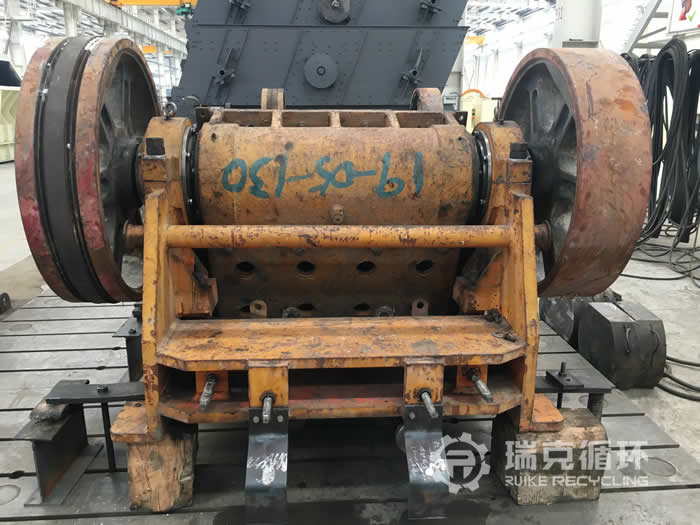 該臺DHKS5112顎式破碎機在安徽某地從事青石的細碎工作,從我集團公司洛陽大華購買之后除了更換易損件以外,在我集團公司沒有其它的售后記錄,還企業由于經營問題,于2019年6月將設備轉讓給我公司,談好回收細節之后我公司技術人員趕往現場對設備進行檢查,基本上和客戶的描述沒有什么出入,將設備裝車運回公司。設備拉回公司之后,清洗、拆機之后用測量工具檢查各個部件的情況,并且根據檢查結果下發檢修通知,完成檢修之后在我公司試機平臺上進行試機,性能和數據符合要求之后重新噴漆。