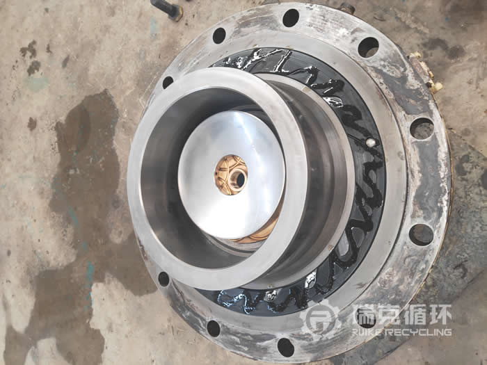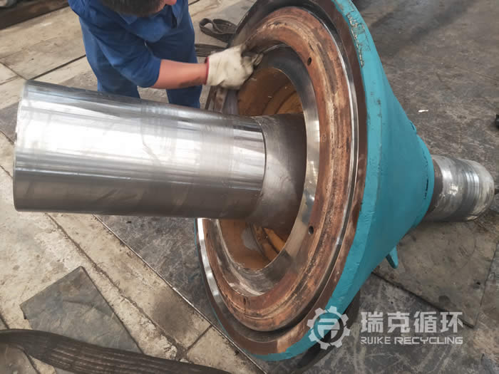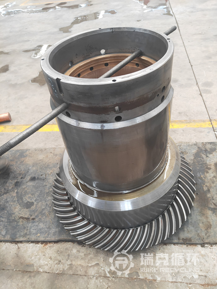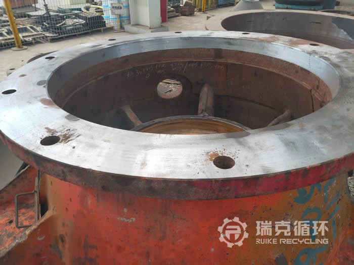 該主機使用過程中保養還不錯,主機架沒有太大磨損,上下架體止口松動,重新上車床校正及加工錐面,是上下架體配合接觸率達到新機標準,更換新襯板,檢查襯板錐面與上架體內錐面結合度達到驗收合格標準。