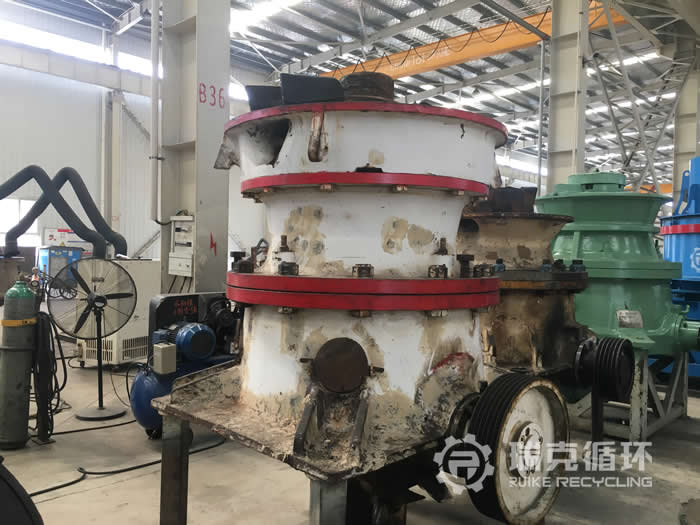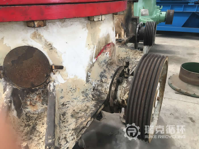 據客戶介紹該臺CF100s圓錐破碎機購買之后一直在河北某地使用,生產性能比較穩定,基本上沒有出現過損壞,使用中只更換過易損件,由于受環保影響,將設備轉讓。我公司派技術人員到現場檢查該設備的實際情況,除了機身銹跡較多以外 ,沒有發展其它明顯的損壞,設備運回公司之后,將設備清洗之后拆開檢查,依據檢查結果制定檢修方案,按照計劃完成還設備的檢修之后,在試機平臺上進行了數個小時試機,試機中設備運行分廠平穩,各項數據均符合出廠標準。