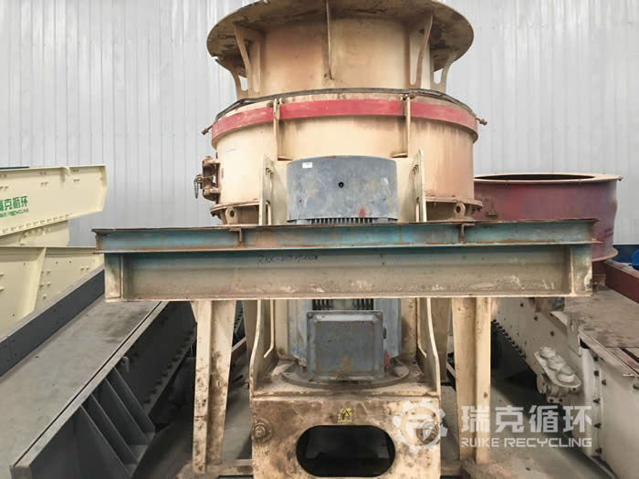 該臺PLS-1200Ⅱ立式沖擊破碎機出廠于2014年,是我集團公司洛陽大華生產的,銷往湖南某地之后一直從事鵝卵石制砂工作,由于受到當地沿河兩岸濕地保護的影響,該企業將設備拆除轉讓。我公司技術人員趕往湖南現場對該設備進行檢查之后,主要部件基本上保存的比較完好,設備運回公司清洗之后,用測量工具檢查各個部位和部件的尺寸,依據測量結果制定檢修維護方案,完成檢修之后質檢人員對該設備檢查之后,在我國公司試機平臺上進行了數個小時的試機,各項性能符合出廠要求之后,在成品區等待噴漆銷售。