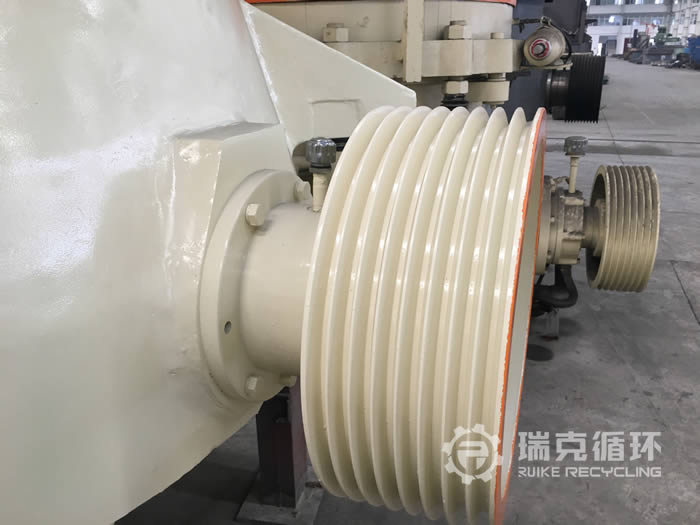 該臺GP300圓錐破碎機已經檢修完成并且重新進行了噴漆,這是我公司銷售人員在甘肅某地回收的,轉讓給我公司之前從事鵝卵石破碎工作,由于受到多方面的影響,客戶將設備轉讓出售,我公司技術人員也在現場對設備進行的檢查,除了機身有銹跡以外,設備整體保存的比較完好,設備運到我公司車間之后,清洗之后將設備整體拆開用測量儀器進行檢查,以試機檢查屬于為依據制定了檢修方案,完成檢修之后在我公司試機平臺上進行了試機運行,各項數據符合標準。