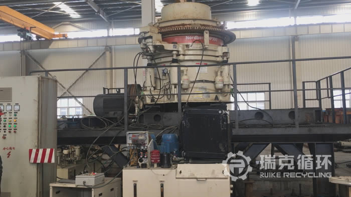 該臺HP300多缸圓錐破碎機是我公司今年9月底在云南某地回收的,由于該企業(yè)與當?shù)匾粋€野生動物保護區(qū)較近,野生動物保護區(qū)規(guī)模的擴大讓該企業(yè)限期搬離,于是改企業(yè)將設備裝讓給我公司。我公司技術人員到現(xiàn)場對設備檢查之后將設備運回公司,在我公司車間對設備清洗之后進行整體拆機,然后測量設備各個部件的實際情況,依據(jù)測量結(jié)果下發(fā)檢修方案,完成檢修之后在試機平臺進行試機,試機中該設備各項性能非常的問題,沒有不良現(xiàn)象的出現(xiàn),符合出廠標準。