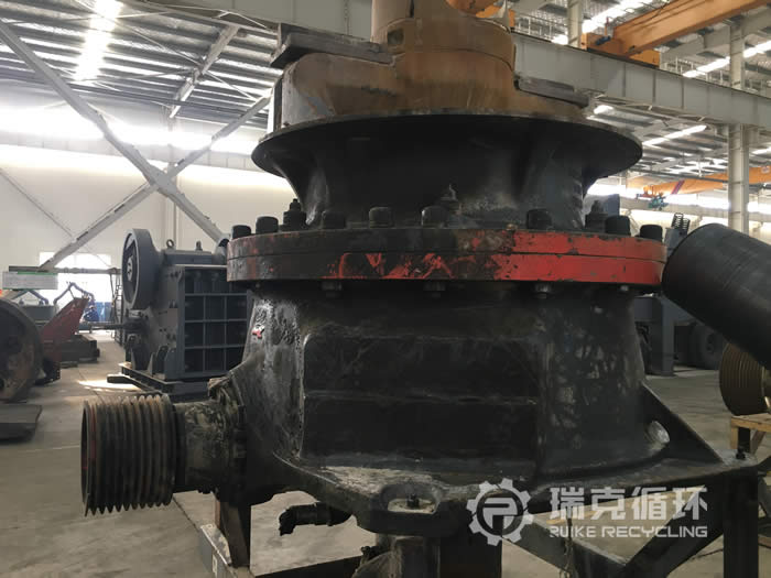 該臺山特維克CH440圓錐破碎是我公司今年10月份在湖北某地回收的,設備回收之前一直從事玄武巖破碎工作,我公司技術到現場對該設備進行檢查之后,將設備運回公司。在我公司車間對設備清洗之后將設備拆開,技術人員用測量儀器仔細檢查各個零部件的使用情況,然后將檢查結果作為依據制定檢修方案,車間技術人員按照檢修對設備進行檢修之后,在公司試機平臺上進行數個小時試機,在試機中該設備運行的非常穩定,沒有不良現象的出現,各項數據也符合標準。