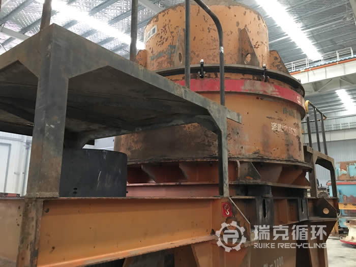 該臺PL1000制砂機是我公司在山西某地回收的,該設備從安裝之后一直從事石灰石制砂工作,由于石灰石的硬度較軟,設備損耗也比較小,和我公司且談好回收事宜之后,我公司技術人員即刻趕往現場對設備進行檢查,發現沒有較大問題之后將設備運回公司。對設備清洗之后將設備拆來檢查,技術人員用測量儀器仔細檢查零部件的實際情況,然后將檢查結果作為依據制定檢修方案,完成檢修之后進行4-8小時的試機,在試機過程設備運行非常問題,性能符合要求之后方能銷售。
