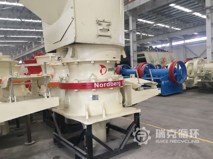 該臺美卓GP100S圓錐破碎機是我公司在山東某地回收的,回收之初該設備是從事鵝卵石破碎工作,由于該企業的生產規模的擴大,現有的設備不能滿足生產的需求,該企業在做廠房改造的同時將設備拆除轉讓給我公司。我公司接到客戶的電話之后派技術人員到現場對設備進行檢查,基本上和客戶的描述沒有什么差別之后將設備回收并運回公司。在我公司車間技術人員對設備進行拆機檢查,然后檢查各個零部件的使用情況,依據實際情況制定檢修法案干,完成檢修后進行試機運行,各項性能符合要求之后重新進行噴漆銷售。