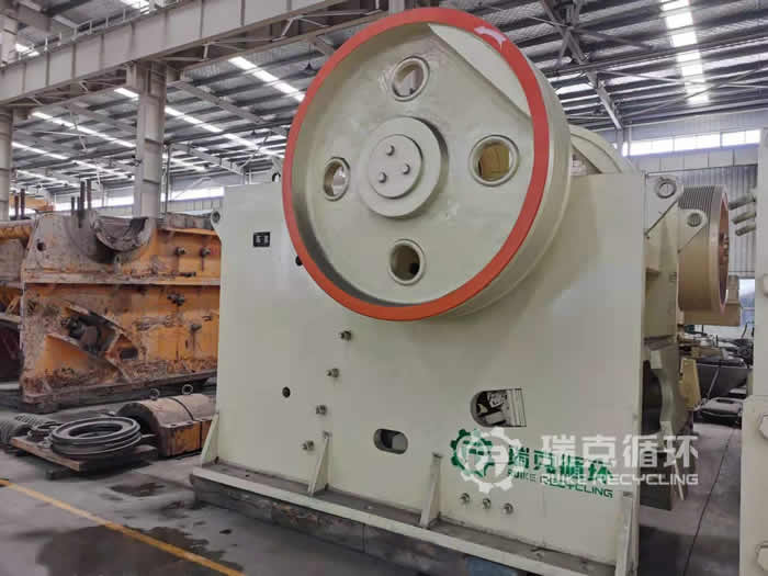 該臺PE912顎式破碎機拆除之前一直從事鵝卵石破碎工作,由于該企業被劃入環境保護區限期搬離,該企業為了降低損失讓設備出售,我公司技術人員到現場檢查之后將設備運回公司。設備運達公司后,將設備清洗干凈并將設備拆開,用測量儀器檢查設備實際狀況,然后制定了完善的檢修方案,完成檢修之后進行了實際運行,各項性能均合適,并且重新噴漆。