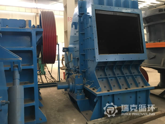 該臺反擊破是我公司在貴州回收的,從安裝調(diào)試完成之后一直從事石灰?guī)r的破碎工作,該企業(yè)與我公司協(xié)商好回收事宜之后,我公司技術(shù)人員趕往現(xiàn)場對設(shè)備進行檢查,除了外觀有銹跡以外,其它部件基本上保存的還比較完整,設(shè)備運回公司之后將設(shè)備清洗干凈進行拆機,技術(shù)人員用檢查儀器對設(shè)備進行測量,然后下發(fā)檢修通知,完成檢修之后重新更換易損件,并且在試機平臺上試機,試機中該設(shè)備運行的非常平穩(wěn),各項性能符合出廠要求,隨后將設(shè)備機身銹跡清楚干凈,重新噴漆。