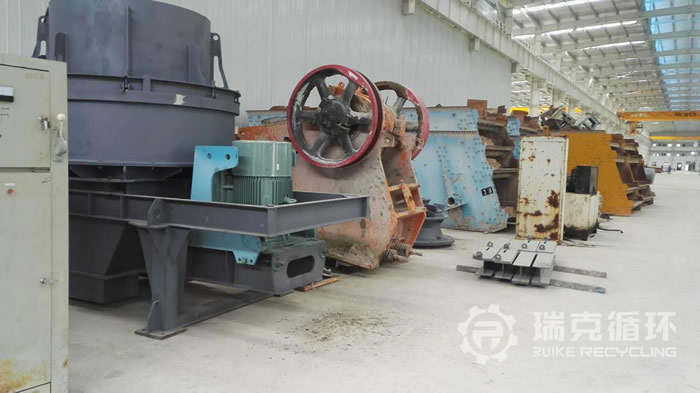 整機之前用于破鵝卵石破碎,使用將近很短時間后一直處于停放狀態,基本全新。外觀重新打磨,客戶預訂后進行噴漆處理。機架無開裂變形,錘頭及反擊板基本無磨損,葉輪做過靜平衡,設備軸承完好,主軸下端無漏油情況。核心部件檢修完畢并試機成功。