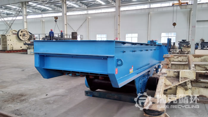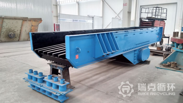 5.設備使用情況:該臺給料機在某化工企業使用,由于該企業生產規模擴大,把該設備拆除更換新設備,被閑置下來,隨后被我公司銷售經理發現并回收。經過我公司技術人員對該臺設備進行檢查,發現篩箱完好無損傷、激振器完好、軸承完好無磨損,隨后對該臺設備進行了維護保養,然后進行試機;在數個小時的試機過程中,我們技術人員不斷的觀察設備運行情況并且詳細的記錄了各項數據,通過對試機現場和數據分析,可以確認該臺給料機各部件均運行正常,工作性能**穩定,沒有不良現象。