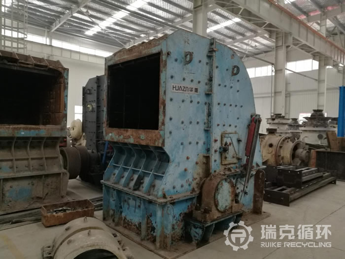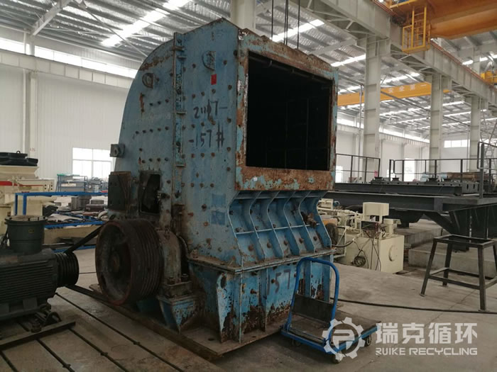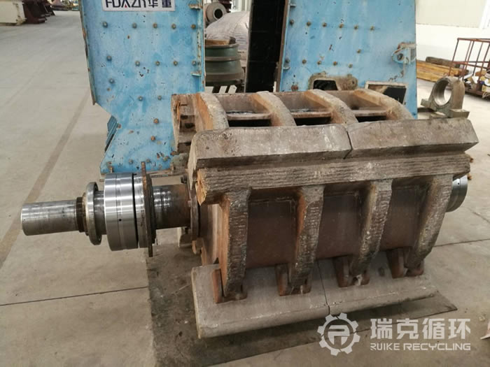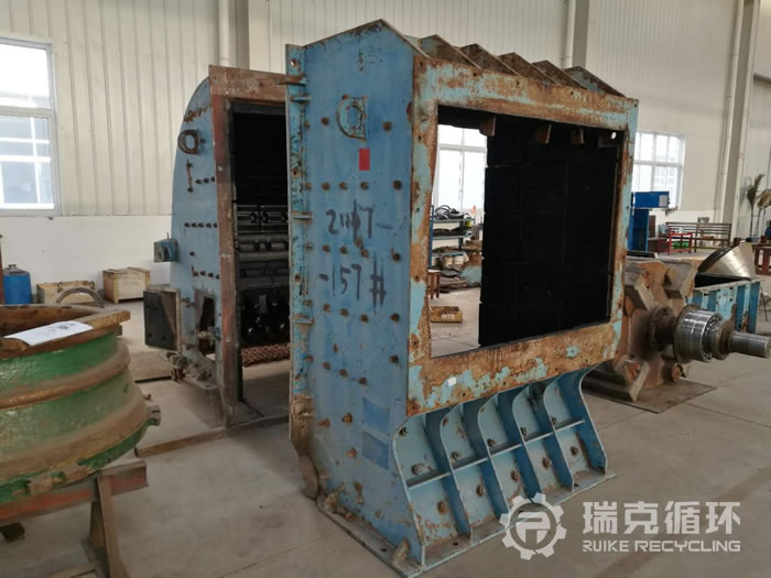 5. 設備的情況:此臺設備出廠時間為2012年7月,為洛陽是大華重機生產的。于次年1月份被陜西砂石廠客戶購買。使用期長達4年,期間并未有主要部件損傷情況發生,因環保情況閑置。 2017年11月,由洛陽瑞克循環回收,設備回收時外觀良好有銹跡。拆解后各部位情況如下:機架完好、反擊襯板完好、板錘完好、轉子架完好、主軸完好軸承老舊,按其情況更換軸承,對其它部位進行維修保養。后組裝進行試機,情況良好符合出廠要求,噴漆后待售。