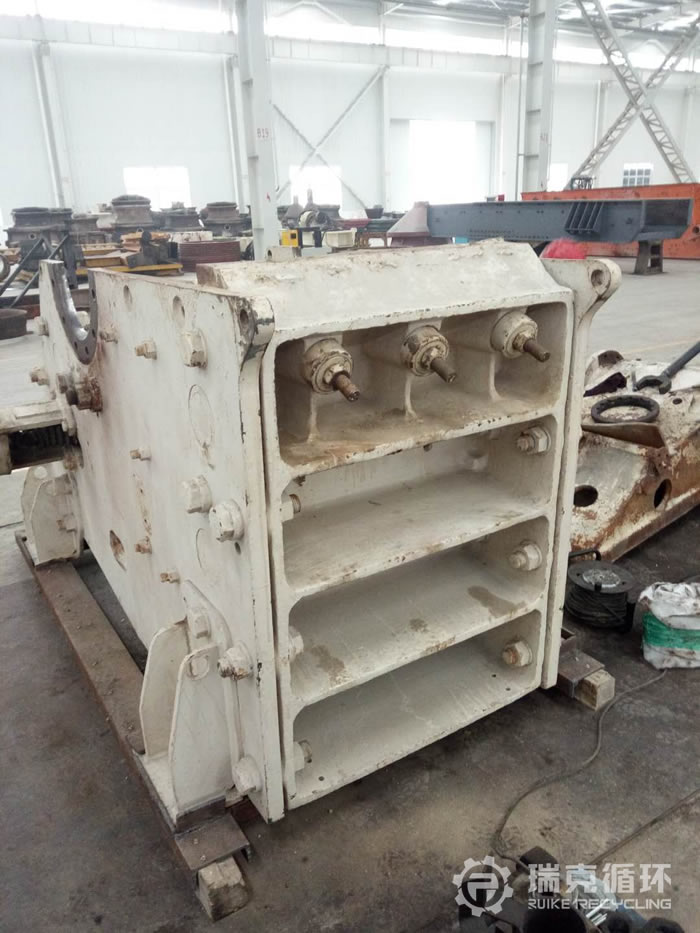 4.、設(shè)備情況:這臺美卓C80顎式破碎機原來在我市洛陽某礦業(yè)的生產(chǎn)線上,由于企業(yè)生產(chǎn)線升級更換新設(shè)備被閑置,后被我們公司收回。該臺顎破在使用中性能非常穩(wěn)定,經(jīng)過我公司技術(shù)人員的檢測、機架軸承無磨損、機架完好、電機完好無損傷、前肘板墊無磨損、整機漆面比較完整。隨后發(fā)現(xiàn)動顎板前面的偏心軸需要維修。然后經(jīng)過維護(hù)和保養(yǎng)后,進(jìn)行整機試機,性能良好。