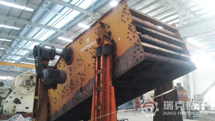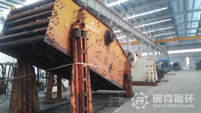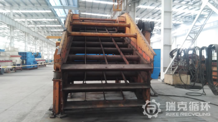 5.設備使用情況:該臺設備是由洛陽大華重工生產(chǎn),在河南某砂石料廠進行石料的篩分工作,由于該砂石廠生產(chǎn)規(guī)模擴大,將該臺設備拆除更換,隨后被我公司回收。該臺振動篩在使用過程沒有維修記錄,只更換過篩網(wǎng),經(jīng)過我公司技術人員對該臺設備進行檢測,該臺振動篩外觀比較完好,偏心塊主軸完好無磨損、軸承座和篩箱、撓性片(輪胎式聯(lián)軸器)均完好,我公司技術人員對該臺振動篩進行了系統(tǒng)的維護保養(yǎng),然后進行試機。經(jīng)過試機可以確定該臺設備性能**良好,振幅正常,沒有出現(xiàn)橫震等不良現(xiàn)象,軸承溫度均符合標準。