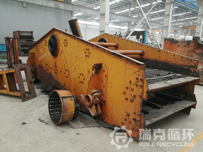 5.設備使用情況:該臺設備是洛陽大華重機生產的,出廠日期為07年1月,被售往內蒙煤礦企業用于礦石破碎后的篩分作業。17年年底被洛陽大華重機子公司瑞克循環回收進行維修后再次出售。設備回收時,篩箱完整有掉漆現象、篩網破損、偏心軸軸承有所磨損、激振器完好、支架完整無破損、傳動器完好,經拆解后認真檢測個零部件并出具修復方案,對偏心軸軸承進行換新、篩網換新,漆面進行打磨,經維修過后試機,試機期間運行順暢平穩無不良現象發生,后經質檢人員檢測合格。然后進行噴漆包裝,以待再次出售。