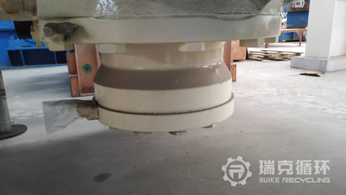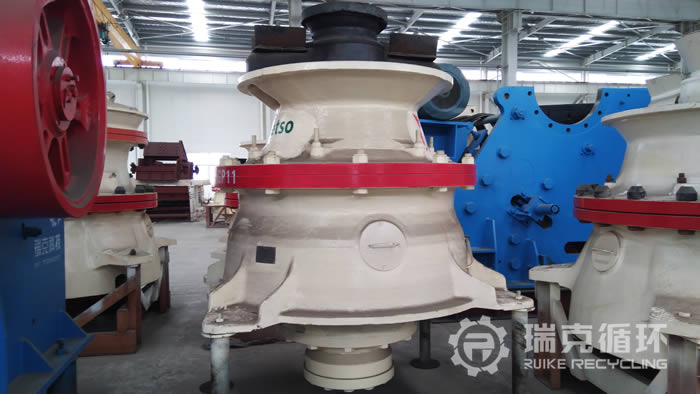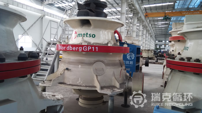 4. 設備情況:該臺美卓GP11圓錐破碎機生產于2012年,在某礦山企業使用了一段時間,由于企業升級更換生產能力更大的設備,把該臺破碎機拆除存放在倉庫中,隨后與我公司聯系洽談回收事宜。經過我公司市場人員觀察,該臺設備除了有銹斑以外,外觀無其它傷痕,運回公司以后技術人員對該臺GP11圓錐破碎機進行了拆機檢測,發現軸承完好無磨損,傳動部、動錐體以及關節軸承、油封都完好無損,技術對該臺設備進行了系統的維修和保養,然后進行整機試機,確保其各方面性能達到出廠性能。
