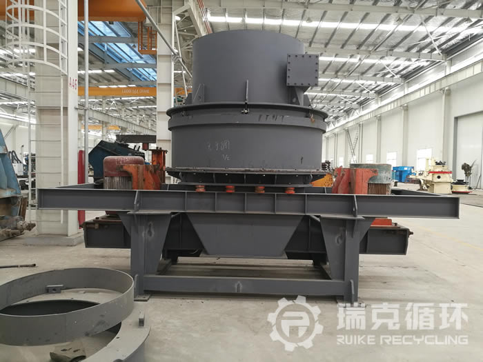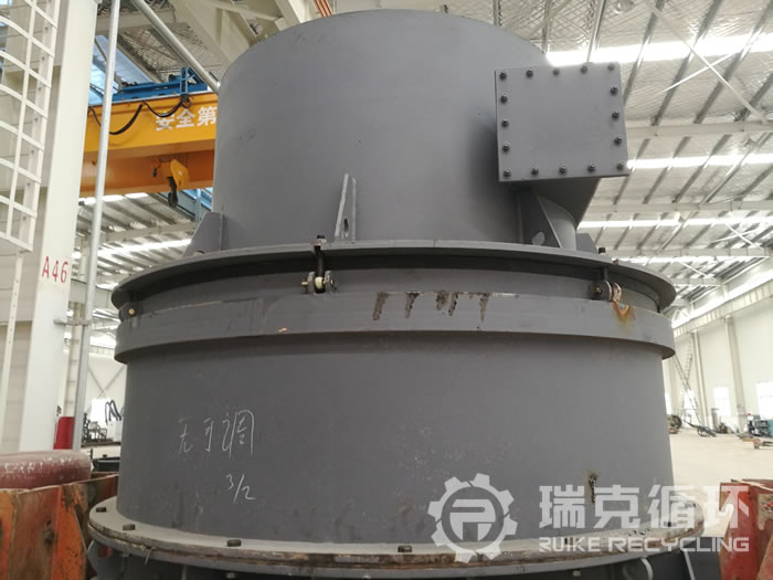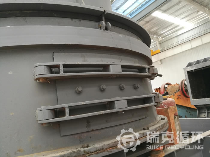 2018年1月,洛陽瑞克循環回收于河北某砂石生產廠家,回收之前尚處于生產狀態,整機無明顯損傷,可正常生產,因配備新的生產線而出售。回收至瑞克之后,經我方工作人員清洗拆分,檢測情況如下,機架無變形等情況發生,僅有部分掉漆和銹跡;電機完好,可正常使用;葉輪稍有磨損,問題不大,經修復后可恢復原尺寸;進料斗完好;分料器有磨損;破碎腔完好無明顯磨損;其余各部分均完好,不影響正常使用。后由技術人員給出修復方案,將葉輪、分料器進行補焊修復,潤滑油進行更換,安裝后重新噴漆,并試機;試機期間運轉正常,經質檢人員檢測正常,可出售。