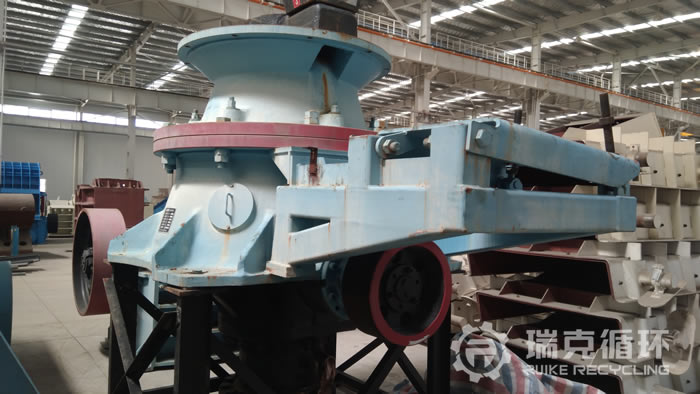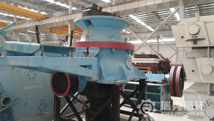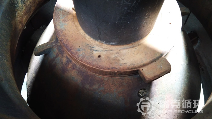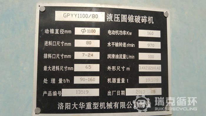 5.設備使用情況:GPYY1100/80單缸圓錐破碎機生產于2013年,是黑龍江某礦山企業購買的,整條生產線安裝調試完成以后,由于種種原因沒有進行生產一直被閑置。后來由于該企業有其它業務發展,與我集團大華重機協商回收事宜,該臺GPYY1100/80單缸圓錐破碎機在購買以后除了安裝調試以外,就沒有使用過。我公司技術人員到現場以后發現該臺設備除了外觀有銹跡以外,沒有其它磕碰的痕跡,運回公司以后對該臺設備進行綜合的檢測,除了外觀以外設備的各個部位都保存的比較完好,隨后我們對該臺設備進行了系統的維護和保養,并且進了數個小時的試機,根據試機現場觀察和數據,該臺設備的工作性能符合出場要求。