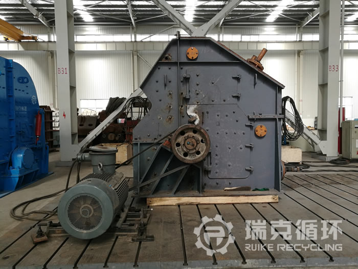 此臺(tái)設(shè)備由洛陽(yáng)瑞克循環(huán)回收于某河卵石破碎企業(yè),回收之前處于閑置狀態(tài),并未有故障等問(wèn)題的存在。此系列產(chǎn)品操作方便、高效節(jié)能。設(shè)備回廠時(shí),整機(jī)漆面完整,外觀良好,并未有明顯磨損;待維修人員拆分后,有技術(shù)人員檢測(cè)得知,大致情況如下:上機(jī)架有輕微磨損;下機(jī)架完好;反擊襯板有部分磨損;轉(zhuǎn)子部完好;錘頭完好。經(jīng)研究后決定,將磨損襯板更換,機(jī)身磨損進(jìn)行補(bǔ)焊加工。維修后進(jìn)行試機(jī)試驗(yàn),試機(jī)完畢經(jīng)質(zhì)檢人員檢驗(yàn)合格后重新噴漆進(jìn)行出售。