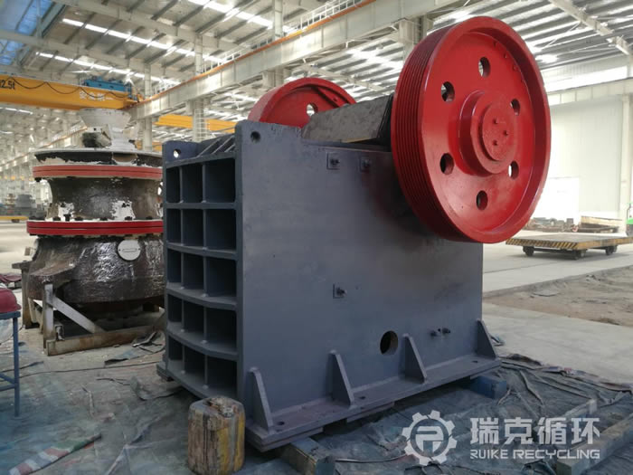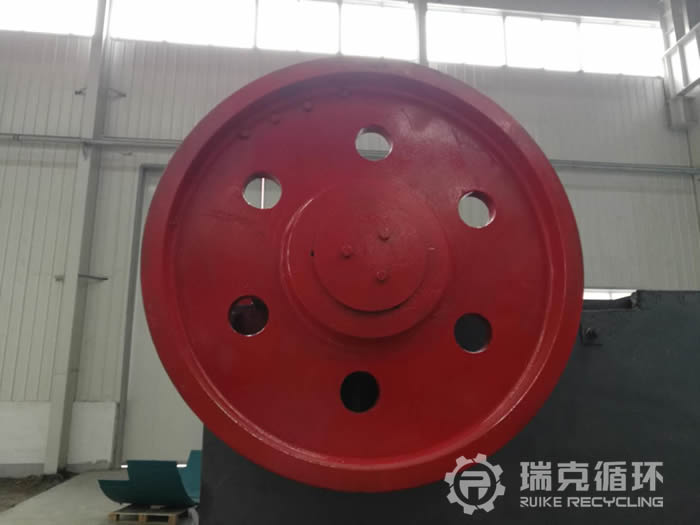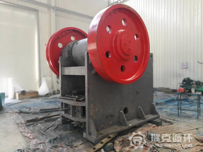 4.設備情況:該設備是洛陽瑞克循環于2018年3月在東南某地的砂石廠回收,設備回收時整體狀態良好,無明顯磨損出現?;貜S后,經清洗后由技術人員對其進行拆分,拆分后檢測各零部件尺寸,與原尺寸進行對照,以了解其磨損程度。檢測后發現,動鄂主軸完好、定顎完好、機架完整、有掉漆現象出現、動鄂部軸承座內孔有磨損、飛輪和皮帶輪均完好,其余各處也都在正常尺寸范圍。根據以上情況給出維修方案如下:補焊軸承座內孔,后進行加工,機架重新處理噴漆,更換油封以及潤滑。維修后組裝進行試機,待質檢人員檢驗合格后達到出廠標準。