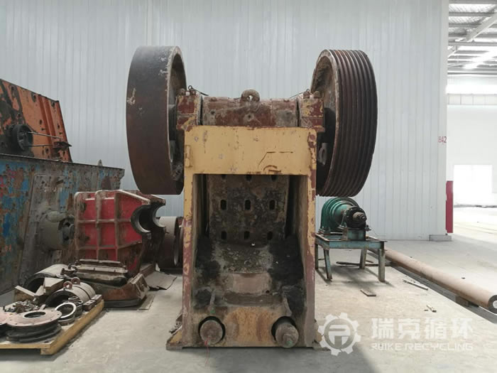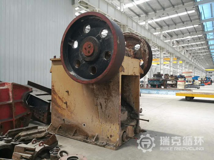 該臺設備是由黎明路橋重工生產的,后被售往砂石廠使用,期間表現(xiàn)良好,無重大故障出現(xiàn)。2018年4月中旬回收至洛陽瑞克循環(huán)。設備到廠后,外觀良好,無明顯損傷。經我方技術人員進行深入檢查后判斷設備情況如下:機架完好;偏心軸完好;大皮帶輪、飛輪均無損傷,可正常使用;襯板處有損壞;動鄂部完好。根據(jù)以上檢查情況,出具維修方案如下:更換受損襯板,其余各部清洗拆分做防銹處理。維修后,重新組裝進行試機實驗,經質檢人員檢查合格后。