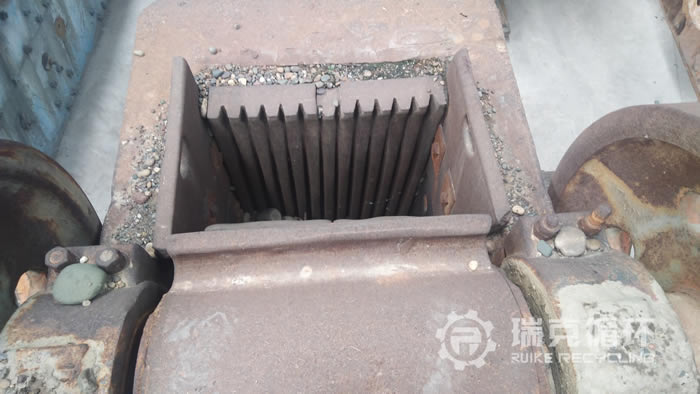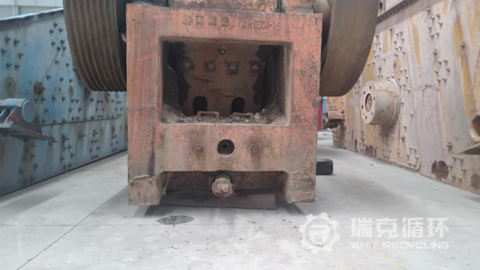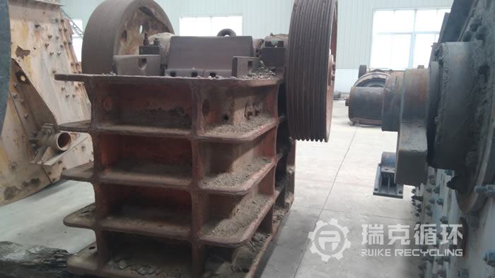 該臺500*700顎式破碎機是洛陽某砂石生產企業購買的,主要用鵝卵石的破碎工作,由于企業經營問題和環保不達標等原因,停止了該條生產線的生產工作,隨后被堆放在倉庫內。我公司銷售人員到該地某企業進行回訪,發現了該臺設備,并與負責人取得了聯系,協商回收事宜;我公司銷售人員在現場對該臺顎式破碎機進行了檢查,發現了除了外觀有銹跡,沒有其它的明顯損傷。把該臺設備運回公司以后進行詳細的檢查,經過檢查發現動顎完好、電機完好、機架完好、機架安裝軸承無磨損,根據實際情況技術人員制定了針對性的維護方案,并且更換了新的襯板,確保設備的各項性能都能夠達標。