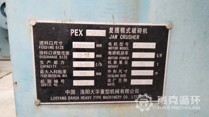 出售二手洛陽大華PEX250*1200復(fù)擺顎式破碎機