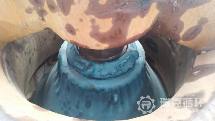 該臺GP330圓錐破碎機是河北某礦山企業(yè)購買的,主要用于玄武石的破碎工作,在使用一段時間以后由于礦區(qū)保護環(huán)境該企業(yè)停止生產(chǎn),并將該臺設備出售給我公司。該臺設備整體保存的比較完整,在使用中除了更換過易損件以后,設備沒有出現(xiàn)過其它損壞現(xiàn)象;根據(jù)技術人對于該臺設備檢測的實際情況確定了檢修再制造方案,該臺設備經(jīng)過每一道檢修流程以后,進行了數(shù)個小時的試機,根據(jù)數(shù)據(jù)和現(xiàn)場觀察可以確定該臺設備的各項數(shù)據(jù)都符合要求。