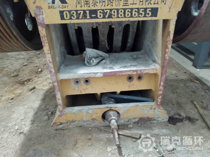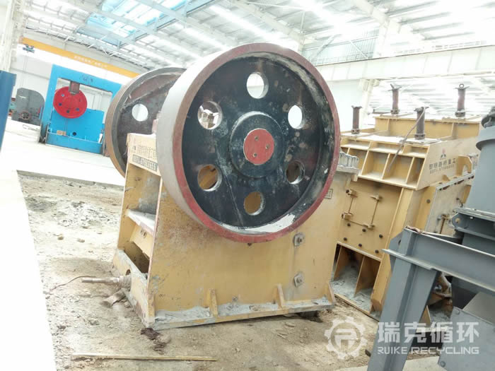 這臺PE600x900顎式破碎機是黎明重工生產的設備,于2018年4月被我們洛陽瑞克循環拉回。它和之前的幾臺是同一批設備,來自同一個砂石廠。這臺顎式破碎機外觀上算是比較整潔的,沒有大面積的銹跡,有八成新。經過我們技術人員的檢查分析后,對此臺設備進行開拆維修保養。發現大多數主要部位飛輪,顎板,機架,軸承都完好無損。后又對易磨損部位偏心軸,肘板進行重點保養。然后進行試機,確保設備在性能上恢復出廠性能。