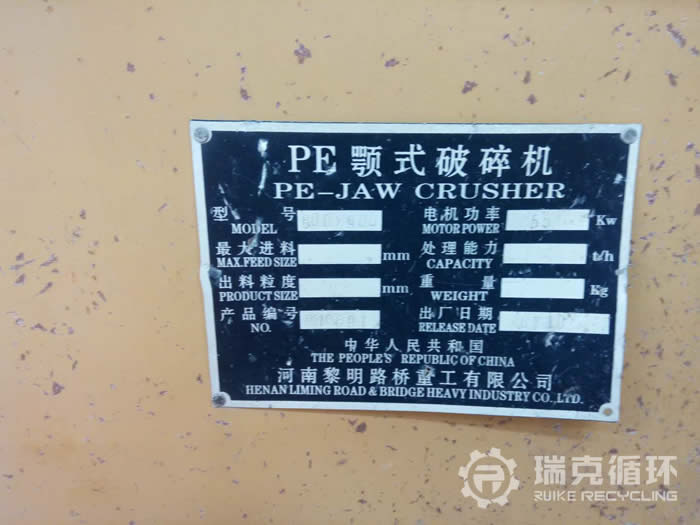 1.設備名稱:黎明路橋重工PE600x900顎式破碎機