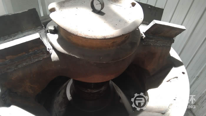這臺GP100圓錐破碎機在被我公司收購之前在湖北某企業進行鵝卵石破碎工作,由于該地區對砂石生產企業進行整改,于2018年5月 轉讓給我們公司。該臺GP100圓錐破碎機在拆除之前一直都處于生產狀態,被我公司收購以后對該臺設備進行了檢測,從外觀可以看到除了有銹跡以外,沒有其它方面的損壞、磕碰,我公司技術人員對 該臺設備進行了拆機檢查,根據檢查加過制定除了維修方案,完成維修以后進行了試機測試性能,各方面性能都非常的良好,隨后等待噴漆。