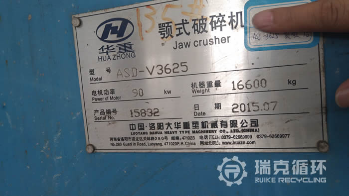 1.設備名稱:ASD-V3625顎式破碎機(洛陽大華重機)