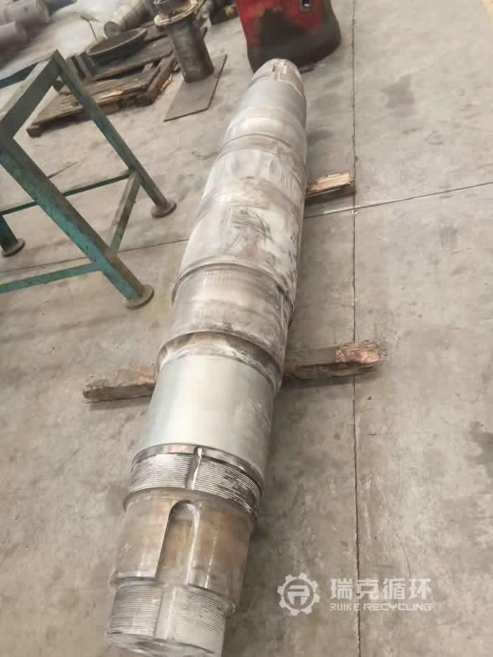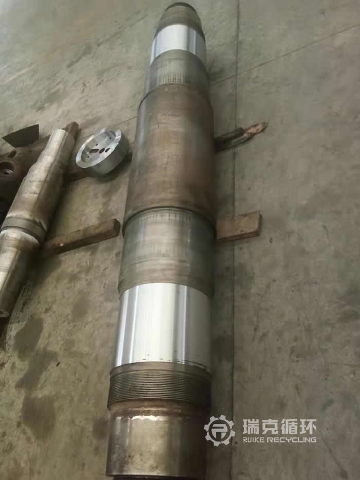 3、 主軸:尺寸復檢,做滲透探傷。經檢查主軸安裝軸承錐套位置跑內圈,主軸尺寸磨損,通過洛陽瑞克激光熔覆修復技術回復主軸尺寸。