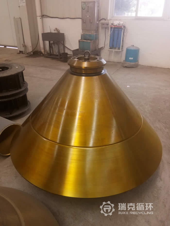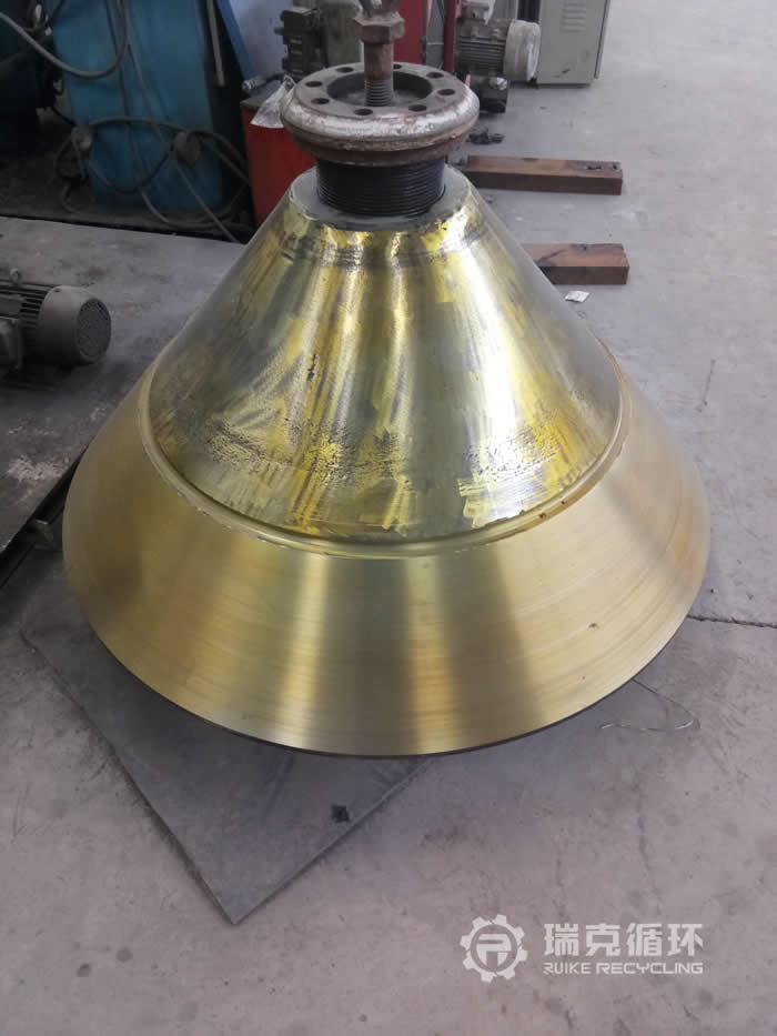 洛陽瑞克循環利用科技有限公司采用將變位機加自動焊接的方法,將動錐外錐面及內孔均勻補焊。然后整體退火處理消除焊接應力,用數控立車重新加工。各部尺寸檢驗合格后交付用戶使用。該零部件通過洛陽瑞克,用再制造工藝和技術,使維修后的零件基本恢復到原有的尺寸。