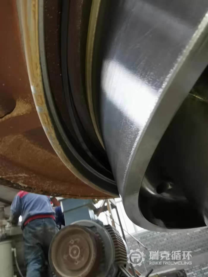 從圖中可以看到平衡圈磨損比較嚴重,護板已經開裂,需刨開后重新灌鉛平衡后焊接護板。