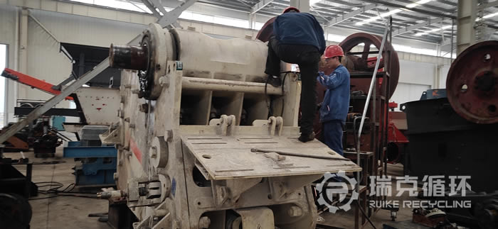 本次機架部位是重點排查對象,有明顯的磨損,軸承座斷絲也要取出,動額部勾角磨損嚴重,底座安裝勾角處間隙過大,動額壓塊螺栓安裝不緊,顎破會處于松動狀態工作。