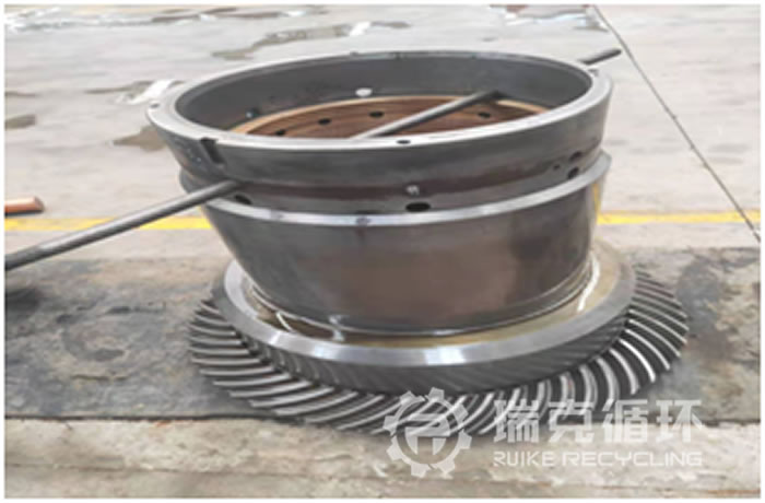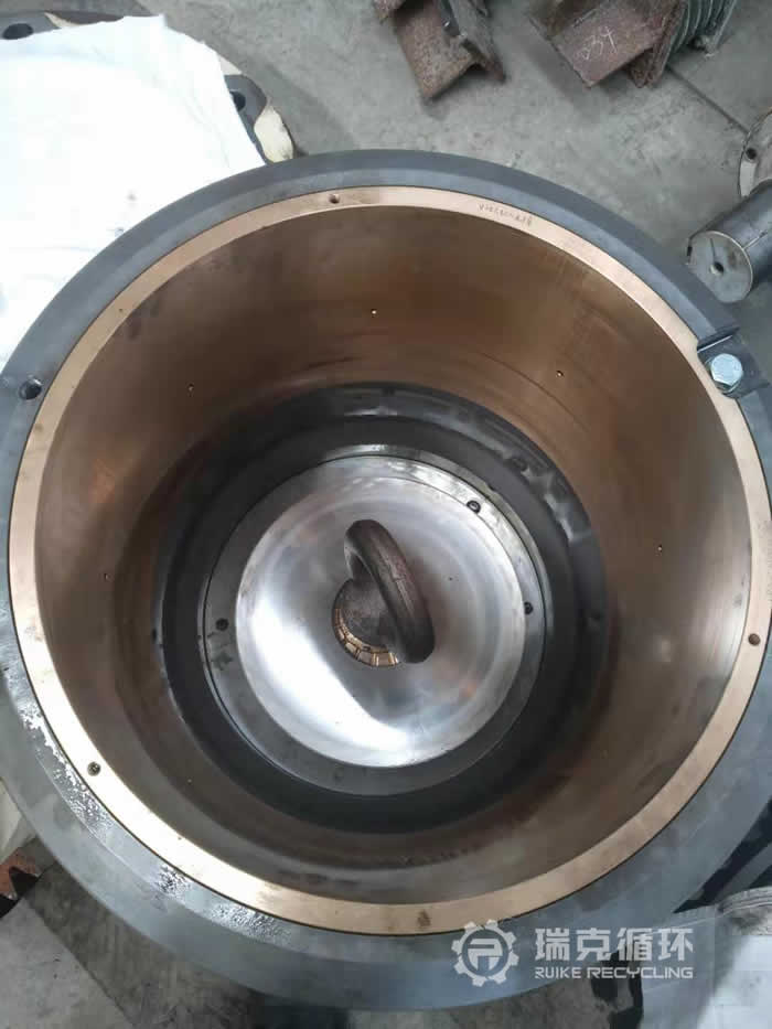 該主機架沒有太大磨損,上下架體止口松動,重新上車床校正及加工錐面,是上下架體配合接觸率達到新機標準,更換新襯板,檢查襯板錐面與上架體內錐面結合度達到驗收合格標準。