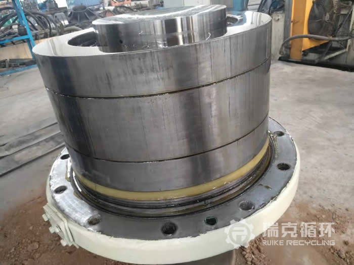 主軸上機床校正,偏心銅套換新,主軸磨損位置拋光處理,盡可能減小與軸套的摩擦力,從而是機器高效運轉。更換主軸軸套,上架體軸承,回轉關鍵部位更換新件,保證設備能夠長期穩定使用。