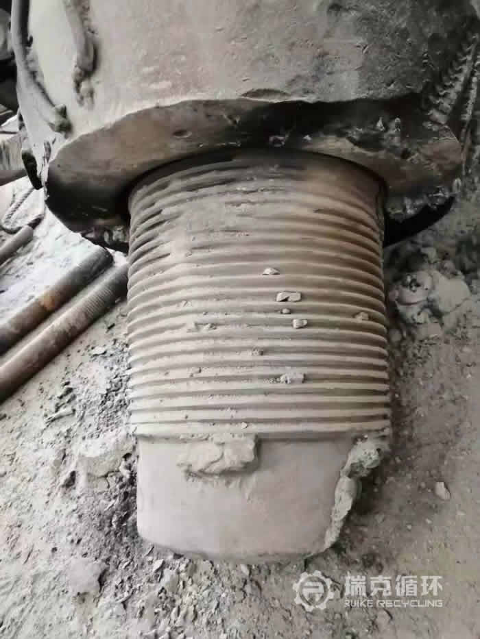 該動錐為欒川某大型礦山公司,整體體積比較龐大,軸頭位置為螺紋結構,可以看到有損壞及掉塊現象。