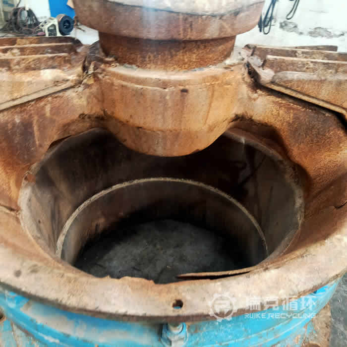 經過優化設計的加強型架體結構、兩端支撐的“簡支梁”主軸結構、動壓潤滑的銅套結構、靈敏可靠的過載保護系統,可確保設備在硬質礦物巖石的破碎長期穩定運行。上機體基本完好,我們只是對護板進行更換處理同時更換頂軸承,上架體如下圖所示: