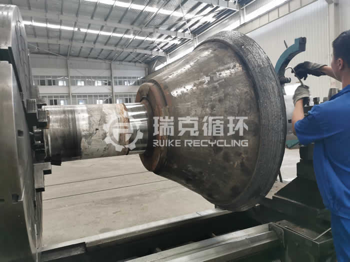 更換軀體并維修安裝襯板的錐面、等離子堆焊、焊后加工;主軸螺紋先加工掉后進行激光熔覆,熔覆后再加工螺紋。