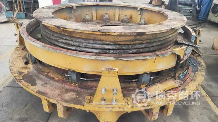 8月初公司承接承德某大型鐵礦圓錐機整機維修業務,前期已到過現場勘查設備使用情況,以及磨損嚴重程度,經判定基本屬于常規磨損,已保養為主。合同簽訂后先后拉回五臺設備,由于時間緊任務重,我們上三組人進行拆解測量,經過一周時間將五臺設備拆解并出具維修方案,等待下一步進行批量修復。
