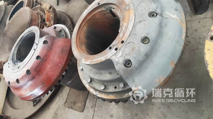 偏心套經檢查,大尺寸基本不變,銅套劃傷部分簡單拋光處理,其余做好耐油漆防護偏心套外圓拋光處理,大小齒輪檢查磨損情況,基本完好。