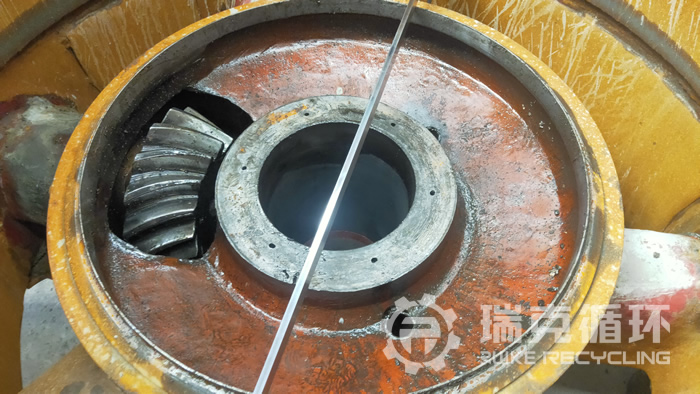 我公司接洛寧銅礦上海多靈HP200圓錐機維修業務,此機主要是在運行中進鐵,導致動錐上銅套,下銅套和偏心襯套燒毀,且主軸磨損嚴重。經過礦上機修簡單維修后使用不到三天,問題復現,我廠技術人員去客戶生產場地實地查看后,拉回我廠進行維修。